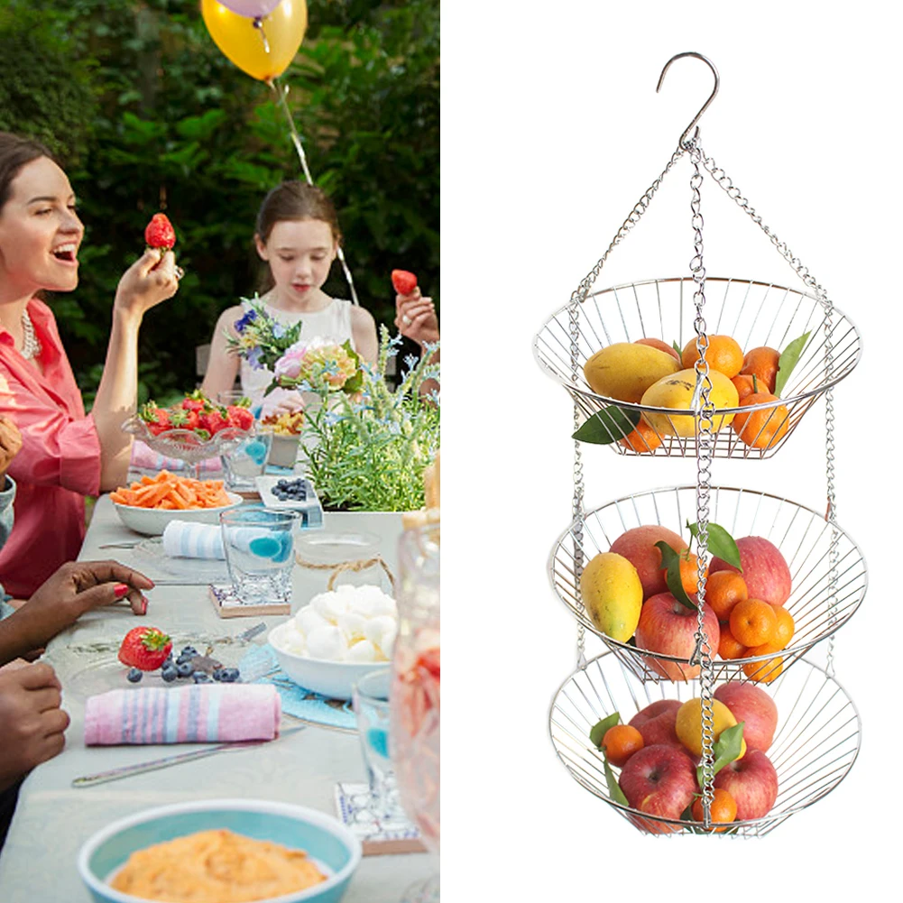 2. Easy to disassemble: The fruit hanging basket can be detached according to your needs. You can detach it into a hanging basket with one layer, two layers, or three layers, or it can be used as a fruit tray.